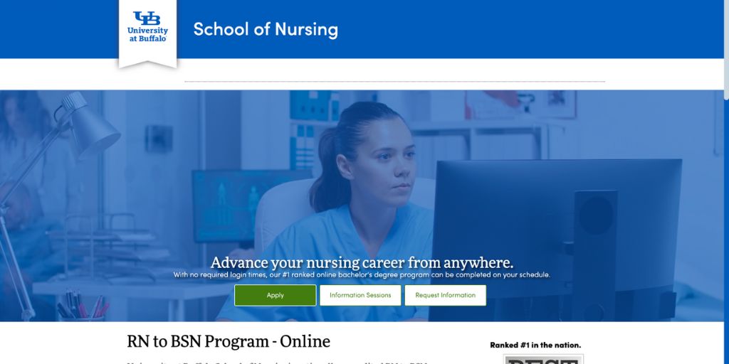 The University at Buffalo’s RN to BSN program is for nurses already working and wanting to advance in their careers. The program is flexible and affordable, and the courses cover various topics, such as nursing research, pathophysiology, pharmacology, and more.