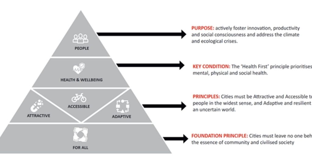The ‘health first principle’ requires the creation of a National Vision and Planning Strategy and Place Frameworks where city authorities would embed everything known about health into plans, decision making and governance.