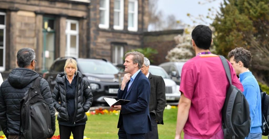 He explained: “I’m not a great fan of emails for communicating with staff they are a great form of record keeping but as a way of communicating with staff they are pretty limiting actually. So we have and 08.30 briefing every morning, where I or one of my colleague let the department know what is going on. It became fairly obvious to us pretty quickly that having group of 20-30 people all in one room was really not very good for social isolation so we started holding it outside on the lawn outside the pillars building and that has worked really well.”