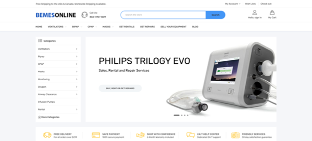 Bemes Online is a well-established biomedical rental and repair provider trusted by many healthcare organisations. The company provides fast and reliable service for various medical products, including ventilators. Each purchase includes a six-month warranty and a 30-day satisfaction guarantee.